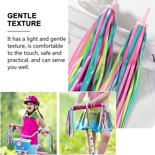 Виріб являє собою набір велосипедних стрічок з тканини. Він має легку і ніжну консистенцію, приємний на дотик, безпечний і практичний і може служити Вам добре. Виготовлена з високою майстерністю, стрічка може летіти на вітрі під час їзди на велосипеді, що має чудовий декоративний ефект. Це ніжна і практична декоративна стрічка з китицею, яка дуже сподобається дітям.