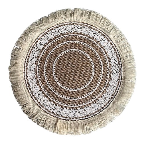 Круглі плетені підставки з бахромою для тарілок для домашнього обіднього столу Біла китиця B