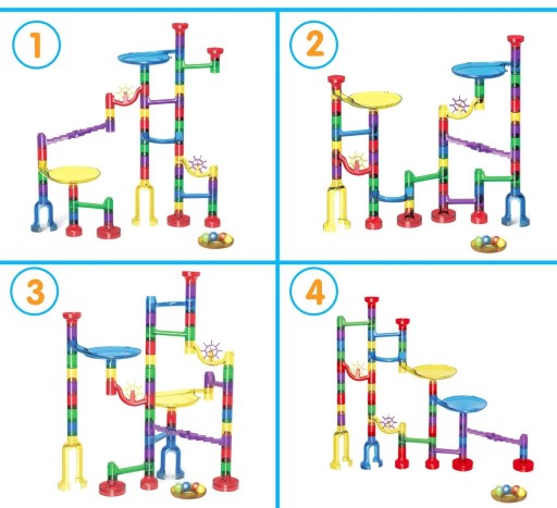 Будівництво вежі з мармуровим лабіринтом покращить координацію рук і очей – навички логічного мислення, навички вирішення проблем і креативність, а також посилить розпізнавання кольорів і форм і просторову уяву як у хлопчиків, так і у дівчаток.
