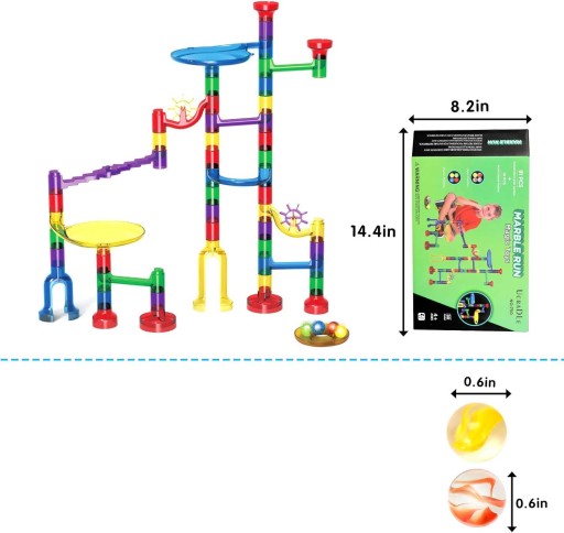 Marble Run Set - Набір містить 91 елемент. 49 кольорових елементів, включаючи прямі слайди, U-подібні слайди, градієнтні слайди, вентилятори, відцентрові воронки та стійкі основи. Крім того, ви отримуєте скляні кульки для швидких перегонів і захоплюючих дій, ви можете будувати нескінченну різноманітність макетів гоночних трас, тож у цю іграшку можна буде грати вічно.