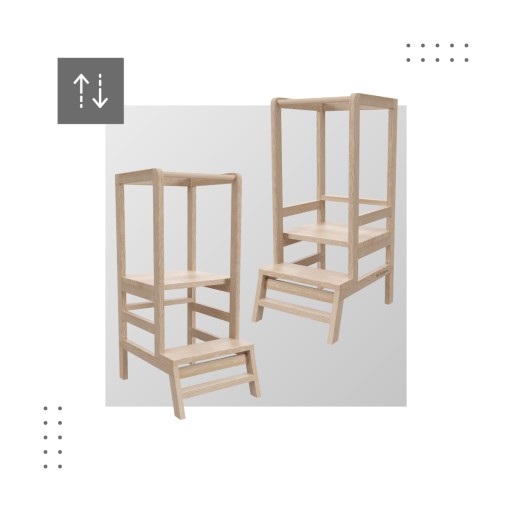 3-ступеневе регулювання висоти основи: 21 / 35 / 48 см дозволяє кухонному помічнику рости разом з дитиною.