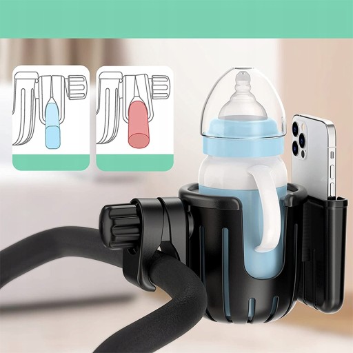 Конструкція, яка легко розмістити: U-подібна конструкція з обох боків підстаканника коляски, яку можна використовувати для розміщення дитячих пляшечок, чашок для води та чашок для кави з ручками. Силіконові виступи в підстаканнику забезпечують стійкість чашки та запобігають переповненню або падінню напою. Підстаканник: Ш * В: 3,94 * 4,13 дюйма. Органайзер для телефону підтримує iPhone 12 pro max навіть з чохлом.