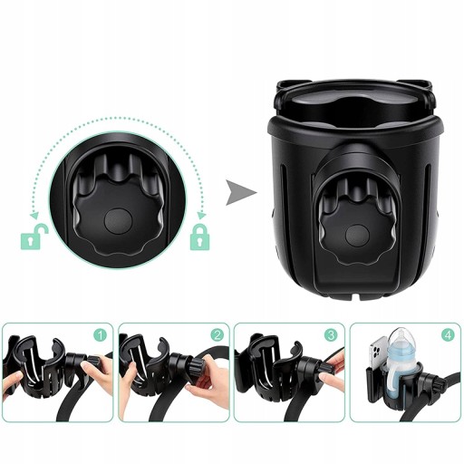 Виберіть потрібний кут: багатофункціональний універсальний підстаканник з органайзером для телефону має регульовану ручку, яка дозволяє регулювати отвір відповідно до ширини та форми штанги, залежно від вашого обладнання. Конструкція, що обертається на 360 градусів, дозволяє регулювати будь-який кут без обмежень і краще сумісна з більшістю інвалідних візків та інших пристроїв.
