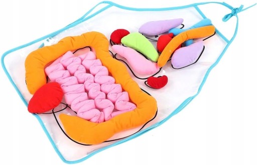 Качечки різнокольорові, знімні. Гачки та петлі у фартусі для легкого кріплення. Це іграшка для раннього навчання, яка підтримує інтелектуальний розвиток дітей. Надписи на органі на фартусі дозволяють дітям легко впізнавати та грати з ними. Це дозволяє дитині зрозуміти будову тіла та підтримує розвиток.