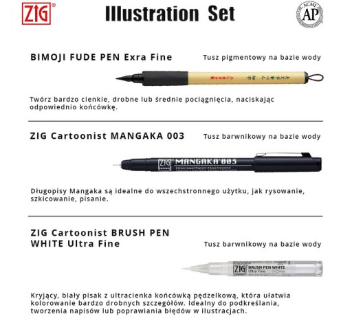 Набір, підготовлений для Inktober, універсальний - ручки дозволяють створювати точні деталі, зручно охоплювати більші площі, малювати, відбиваючи світло, різноманітні типи наконечників дають надзвичайно широкі творчі можливості!