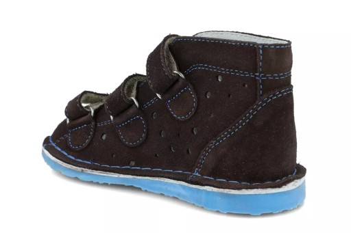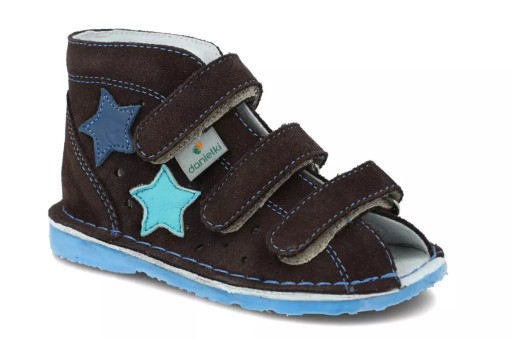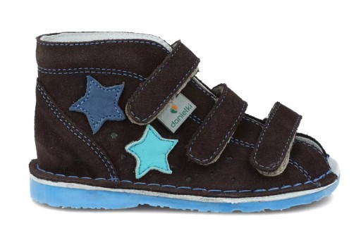 - Підошва з термогуми гарантує високу стійкість до стирання та зчеплення з землею. Вони бувають різних цікавих колірних варіантів. У моделі профілактичного взуття Danielki T125 він синього кольору. Посилена п'ятка і вбудована п'ятка Томаса додатково забезпечують правильне положення стопи нашої дитини.