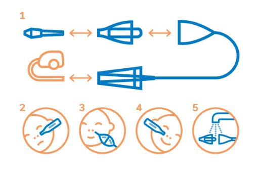 Одразу після використання промийте частини аспіратора теплою питною водою з миючим засобом, зручним для дітей.