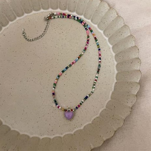 [Ручна робота] Вишите бісером намисто ручної роботи з підвіскою-сердечком із подовжувальним ланцюжком