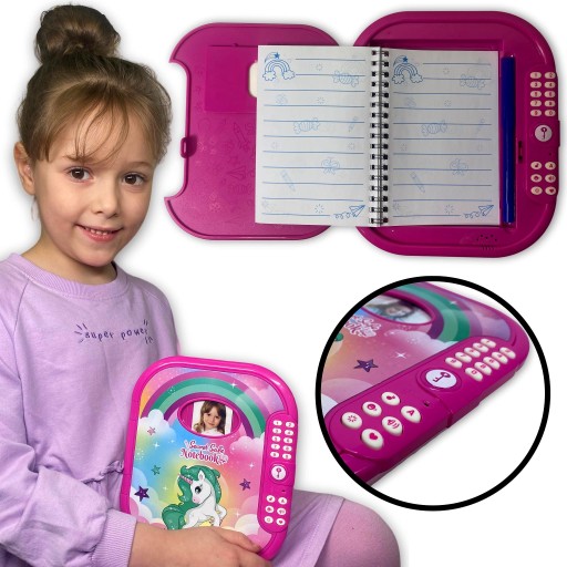 Чарівний щоденник від VTECH - це чудовий блокнот, в якому можна записувати таємниці та захистити їх від прочитання паролем! На обкладинці є місце для фото власника. Чарівний щоденник має вбудовану можливість записувати звуки та відтворювати їх. За допомогою цифр на лицьовій стороні ви можете зберегти пароль у щоденнику та відтворити голосові записи. Щоденник також має функцію модифікації голосу та математичну гру «Знайди число». Всередині знаходиться блокнот зі спеціально відведеними місцями для секретів і даних власника. Поруч з блокнотом всередині є спеціальне місце для кольорового фломастеру, який входить в набір. Під блокнотом є спеціальне відділення для скарбів.