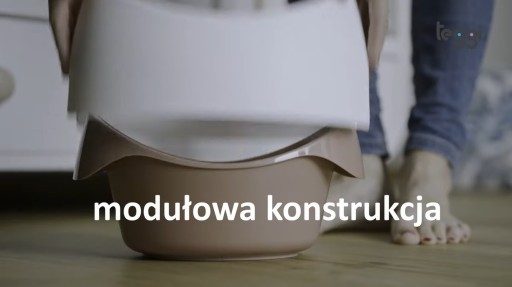 Горщик має зручну двосторонню спинку. Його форма не випадкова, він створений у співпраці з фізіотерапевтами, дизайнерами та батьками.Коли дитина сидить на ньому, він зберігає свою фізіологічну, природну позу. Модульна конструкція дозволяє легко чистити горщик після того, як дитина його використає. Горщик не ковзає по слизьких поверхнях завдяки антиковзаючим елементам, і при цьому його зручно носити і легко зберігати. Має гладку поверхню і не має гострих країв, за які дитина могла б зачепитися або поранитися. Після виконання своїх функцій його можна використовувати повторно та мати багато інших застосувань. Упакований в естетичну картонну коробку, чудово підійде на подарунок.