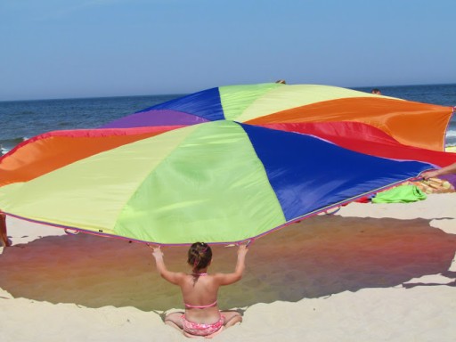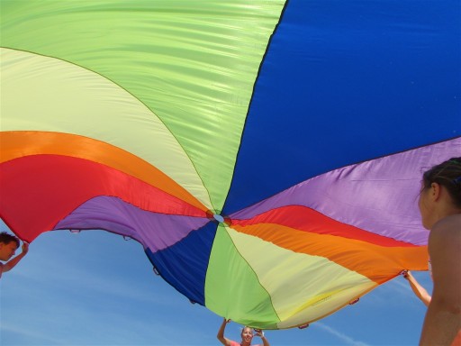 Барвистий і легкий парашут дозволяє організовувати багато групових ігор.