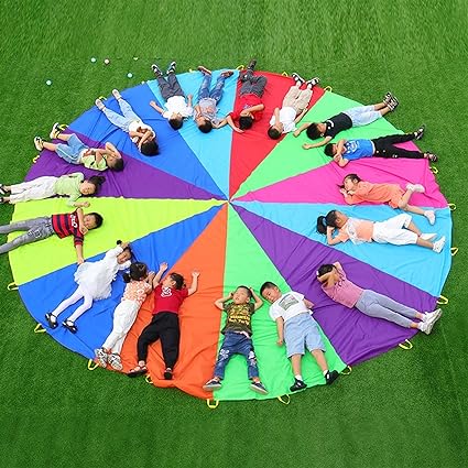 Розваги гарантовані. Наші яскраві парашути чудово підходять для вечірок як ігри та розваги, де діти веселяться, створюючи веселі пробіжки або будуючи намети, запалюючи уяву та ідеї.