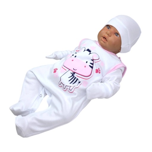 Підкладка виготовлена з безпечного для ніжного тіла малюка матеріалу. На руках і ногах є аплікація «Зебра», яка додає шарму та викликає посмішку на обличчях батьків та інших людей. Набір виготовлений на 100% від польського виробника.