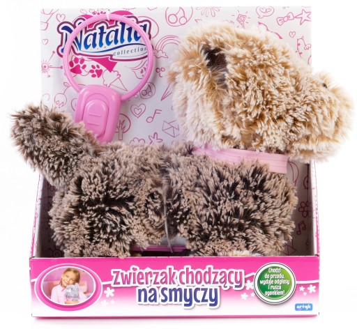 Посуньте кнопку на ручці повідка (два градуси градусу), і ваша собака почне чарівно ходити та радісно виляти хвостом. Цей милий звірятко, новий друг вашої дитини, має м’яке коричневе хутро, чорне хутро та ніс із кумедною мордочкою. Його шию прикрашає рожевий комір.