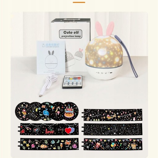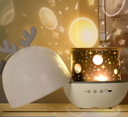 Нова проекційна лампа з трьома вбудованими кнопками, проста у використанні. Також на вибір є 6 різних кінопоказів: «Підводний світ», «Загадкова планета», «Чудове сузір’я», «Поцілунок до Дня святого Валентина», «День народження», «З Різдвом Христовим». Красиві візерунки відображаються на стінах і стелі для гарного вечора