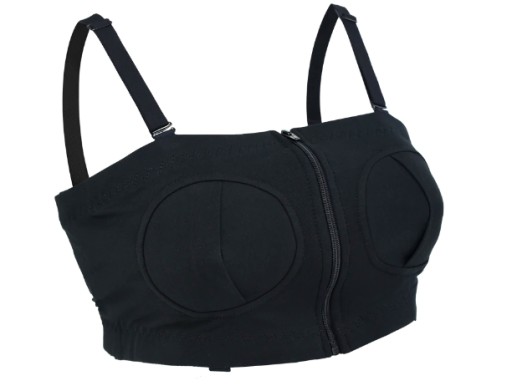 Чотири шари еластичного матеріалу, що перекриваються, пришиті навколо отвору для лійок, що забезпечує дуже хороше прилягання лійок і надійну підтримку пляшок, непомітно прикриваючи груди.