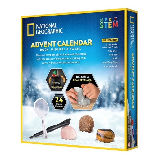 Ідеальний як подарунок до Святого Миколая, він містить захоплюючу інформацію про кожен зразок, щоб ви могли отримати знання та розширити свою колекцію каменів і скам’янілостей! У календарі National Geographic на кожен день Адвенту є унікальний сюрприз!