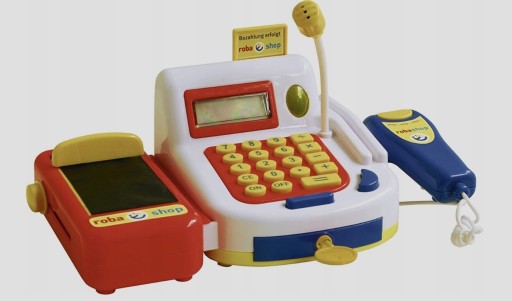 Велике обладнання магазину ROBA пропонує все, що забажає серце вашого маленького магазину: касовий апарат із вбудованим сканером платіжних карток, автоматичне керування біговою доріжкою, гучномовець, калькулятор і ключ від ящика для грошей.