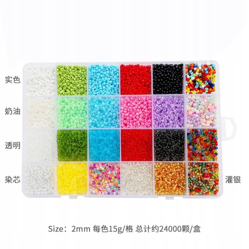 24 кольори дрібного рожевого бісеру в наборі в коробці