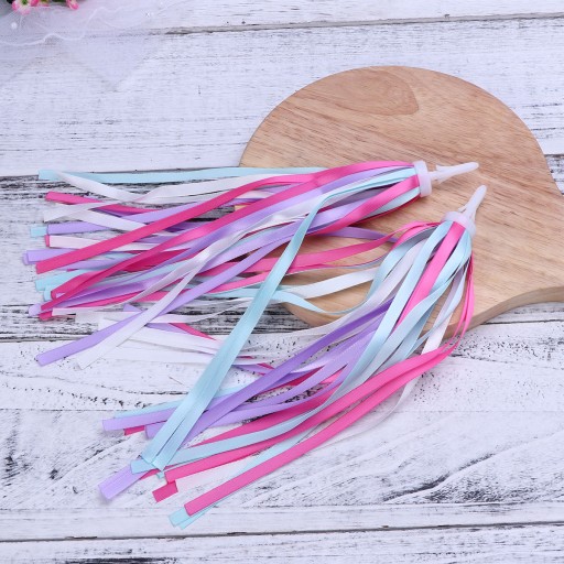Характеристики Колір: як показано. Матеріал: нейлон. Розмір: приблизно 29 x 5 x 5 см. Дуже насичений колір і блиск для ідеальної прикраси. Простий і цікавий спосіб одягнути дитячі велосипеди. Під час катання блискучі розтяжки літатимуть і танцюватимуть на вітрі. Він підходить до керма більшості дитячих велосипедів, триколісних велосипедів і самокатів.