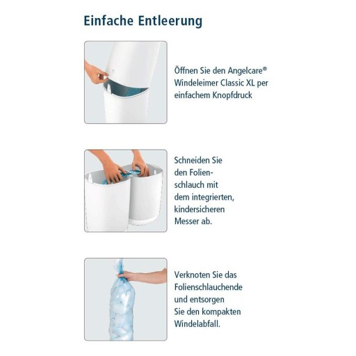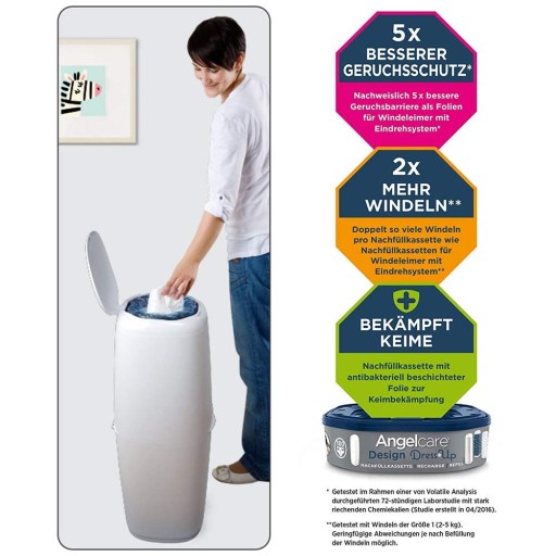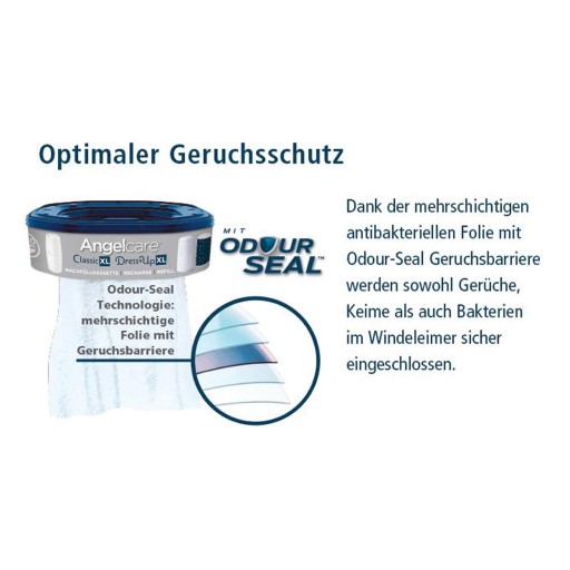 - Кошик для підгузників Classic XL зручний і стильний. Він характеризується зручною для спини висотою та великою місткістю. Заправна касета забезпечує оптимальний захист від запахів завдяки технології OdourSeal. Спеціальні заправні касети містять семишарову антибактеріальну фольгу з бар'єром для запаху. Завдяки цьому неприємні запахи та мікроби не можуть вільно проникати назовні. Наповнювачі Angelcare служать довше і використовують менше фольги. Підгузки не окремо вкручені в плівку, а зібрані в один шматок шланга. Це більш екологічно безпечно, оскільки використовується набагато менше фольги. Завдяки великій місткості ви позбавите себе від необхідності часто ходити до сміттєвого баку.