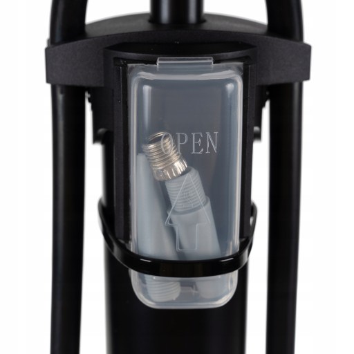 - ДОВГИЙ ЗАМОК З СИСТЕМОЮ БЛОКУВАННЯ Підлоговий насос має гнучкий шток довжиною 70 см. Крім того, на кінці штока поруч із головкою клапана є замок, завдяки якому ви можете легко використовувати насос, не тримаючи наконечник на клапані.