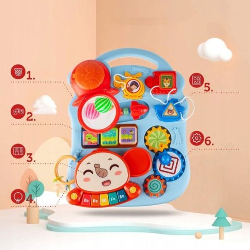 Багатофункціональна панель знімається з ходунків, панель оснащена ременями, які дозволяють прикріпити її до коляски. Малюк може повністю тренувати координацію рук і очей дитини та стимулювати його чи її цікавість.