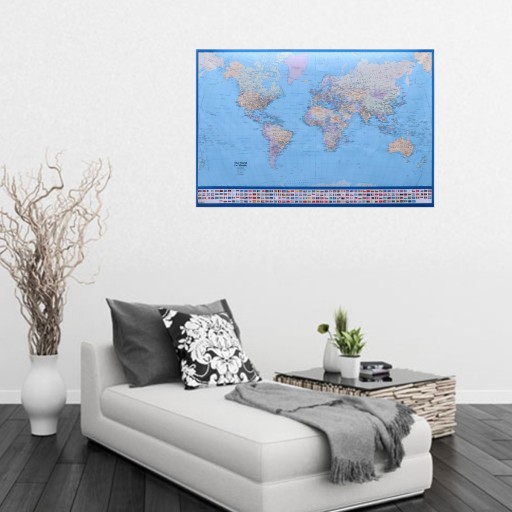 Кожна карта світу має різний колір, і всі великі міста позначені на гігантському плакаті з картою світу, а столиці чітко позначені. Затінення пагорбів і моря, розроблене розробниками карт, підсилює загальний яскравий ефект цього прекрасного великого плаката з картою світу.