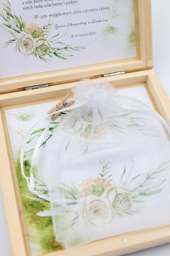 - складається з: натурального світлого дерева та білих листівок із надрукованими ніжними квітами