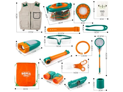 Ігровий набір на відкритому повітрі дозволить тобі зіграти роль справжнього дослідника! У наборі багато аксесуарів, які дозволять вам познайомити дитину зі світом спостережень за природою. Є, серед іншого: бінокль для спостереження за птахами, збільшувальне скло, сітка від комах і компас.