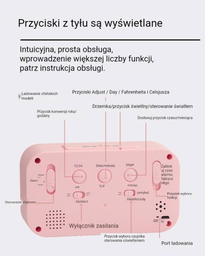 Функції Дисплей з великими символами / відкладення будильника / дисплей дати / дисплей часу / дисплей температури / тихий / нічне світло