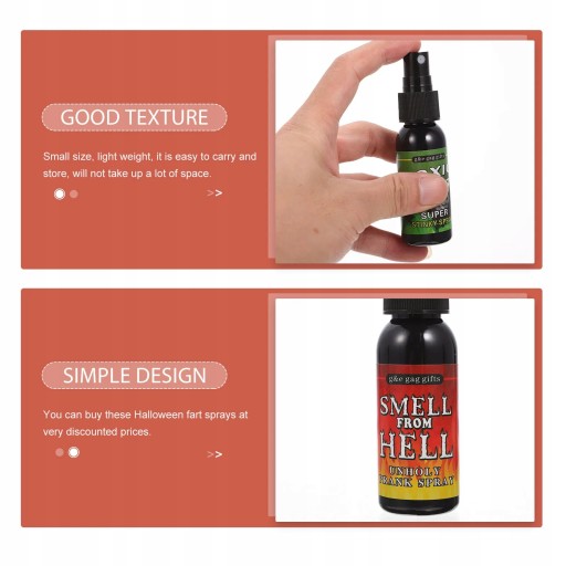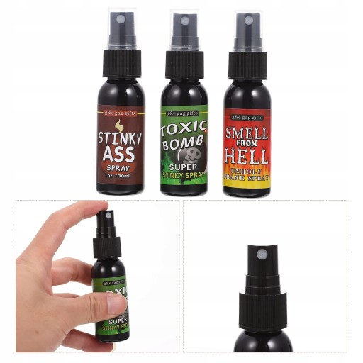 Спрей - ідеальний сюрприз для особливої людини! Він створює неприємний запах, який неодмінно вплине на вашу жертву. Ваша родина та друзі не знатимуть, що їх спіткало. Цей спрей створює лише неприємний запах і не зашкодить вашим друзям. Це чудовий реквізит на Хелловін!