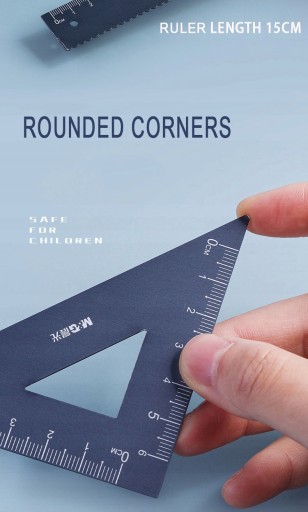 Набір алюмінієвих лінійок 4 шт./набір: лінійка 15 см + трикутна лінійка 30 + трикутна лінійка 60 + транспортир