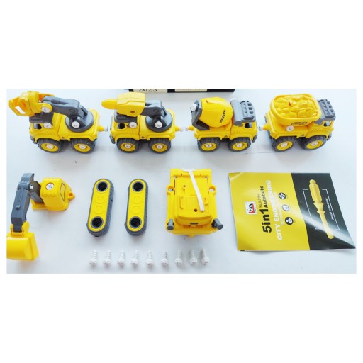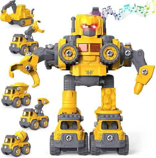 - - Інженерний автомобіль і робот 5 в 1. Цей набір інженерних автомобілів із 5 транспортних засобів можна зібрати в робота та робота, які також можна розібрати на 5 будівельних транспортних засобів, таких як екскаватор, бетономішалка, кар’єрна вантажівка та дровозахват. . Ця весела іграшка-трансформер може розвинути у дітей логічне мислення та покращити координацію рук і очей, тож ваша дитина годинами веселиться.
