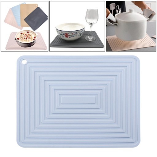 Водонепроникний тримач для сушіння посуду. Термостійкий килимок для сушіння посуду. Світло-блакитний