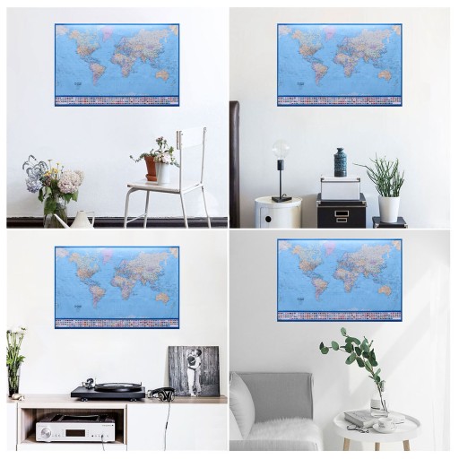 Кожна карта світу має різний колір, і всі великі міста позначені на гігантському плакаті з картою світу, а столиці чітко позначені. Затінення пагорбів і моря, розроблене розробниками карт, підсилює загальний яскравий ефект цього прекрасного великого плаката з картою світу.