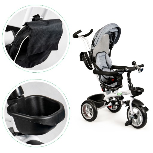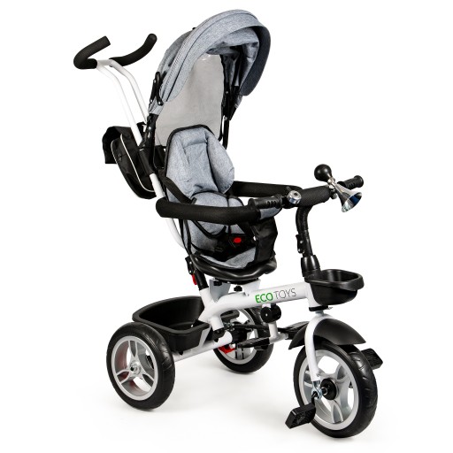 Велосипед ECOTOYS поєднує в собі безліч практичних рішень, які забезпечать вашій дитині комфортну та безпечну гру. Велосипед має м'яку зручну спинку, завдяки якій малюкові буде зручно сидіти, а ремені та рейлінги захистять його від випадання з сидіння. Розкладний навіс захистить від дощу та сонця. Спеціально профільований каркас і поворотне сидіння полегшують посадку найменшим дітям.