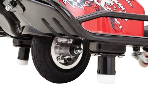Задні колеса RAZOR Crazy Cart 25173860 кріпляться на кронштейнах. Завдяки можливості змінювати кут нахилу колісної опори, ви можете їхати вперед або викликати ковзання ззаду. Транспортний засіб має переднє ведуче колесо, яке контролює напрямок руху. Їдьте вперед, назад, убік, навколо своєї осі - так, як вам хочеться!