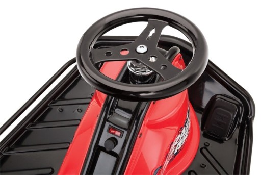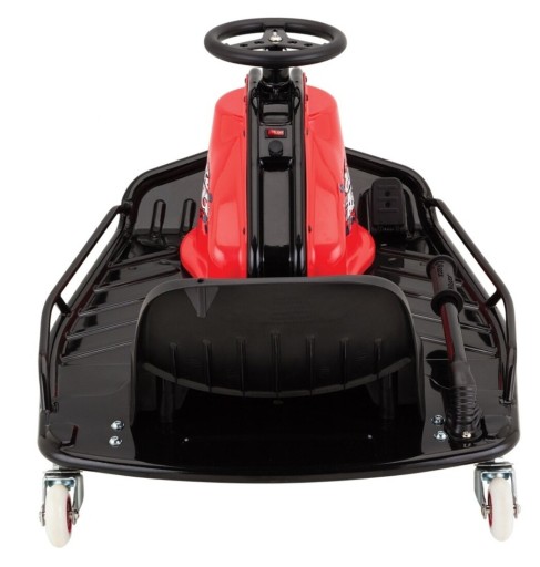 Електромобіль RAZOR Crazy Cart 25173860 запускається за допомогою вимикача. Слід зазначити, що автомобіль не має окремого гальма, але його дуже легко зупинити. Користувачеві потрібно лише зняти ногу з педалі акселератора і повернути кермо на 90 градусів вліво або вправо, після чого автомобіль миттєво зупиниться.