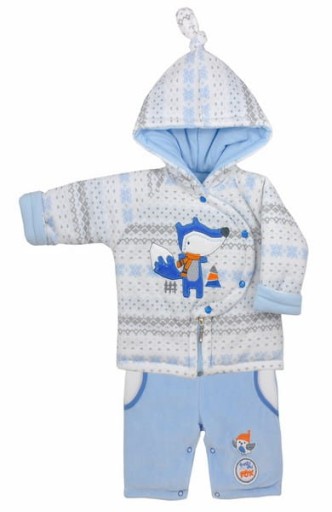 Теплий дитячий комплект для хлопчика, що складається з комбінезона і кофти з капюшоном. Комбінезон застібається на плечах і на промежині. Світшот має синю застібку-шпильку (верхня частина) і блискавку внизу. Спортивний костюм м'який і приємний на дотик. Він зігріє малюка в холодні дні і водночас забезпечить свободу рухів. Капюшон додатково захистить голову від ходьби. Спортивний костюм ідеально підходить для осені та зими, а також його можна носити під пивну куртку в морозні дні.
