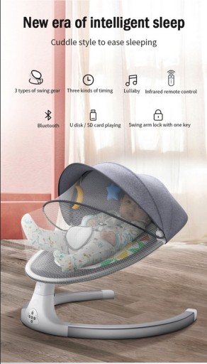 Обирайте безпеку вашої дитини та свій комфорт! Якщо ви шукаєте крісло-гойдалку, ви знайдете щось особливе на цьому аукціоні! Електрична люлька-гойдалка для дітей з дистанційним керуванням дозволить комфортно доглядати за дитиною.