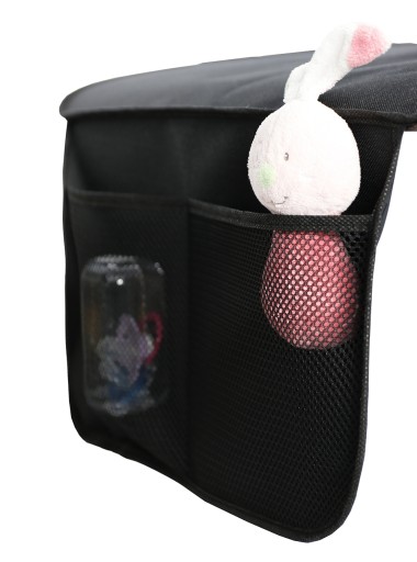 Сидіння додатково обшито щільним поліестером, який є водонепроникним шаром. Захисний килимок легко встановити - просто розстеліть його на сидінні і прикріпіть до підголівника за допомогою еластичної стрічки, вшитої у верхній частині спинки.Дві кишені внизу килимка дозволять зберігати необхідні речі.