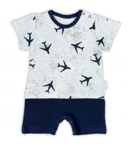 Ідеально підходить для теплих днів, комбінезон для хлопчика, з короткими рукавами і штанинами, з обробкою по горловині.
