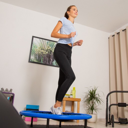 Хочеш тренуватися вдома? З цим батутом у вас є фітнес-обладнання, яке зробить заняття приємними! Завдяки пружинам тренування на витривалість на цьому батуті не тільки полегшують суглоби, ніж біг підтюпцем, але також тренують рівновагу, баланс і координацію.