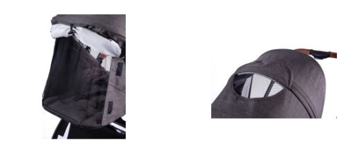 Спинку можна відкинути в кілька етапів до лежачого положення, а капюшон можна розширити для більшого комфорту.