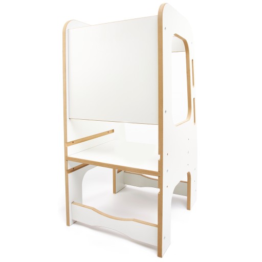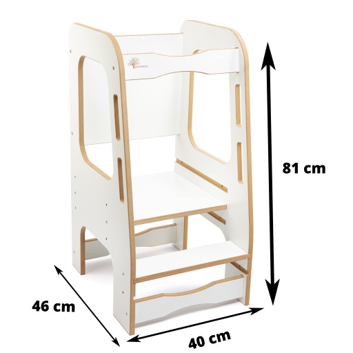 Наш кухонний помічник створений для того, щоб ваша дитина могла легко брати участь у приготуванні страв з раннього віку. Завдяки 3 регульованим висотам платформи та 2 висотам сходинок.