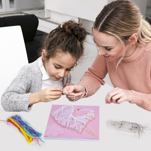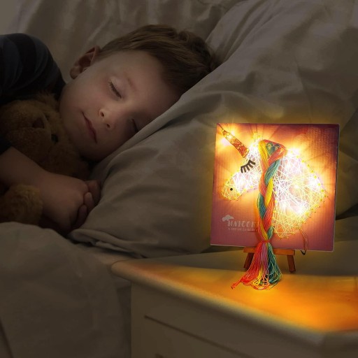 Діти можуть створювати власні витвори мистецтва за допомогою цього набору для мистецтва з єдинорогом і світлодіодним освітленням.