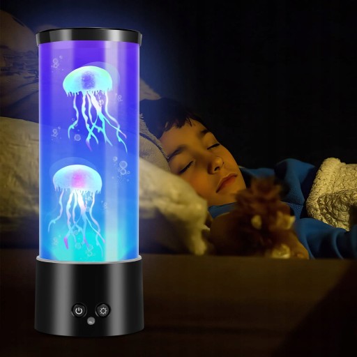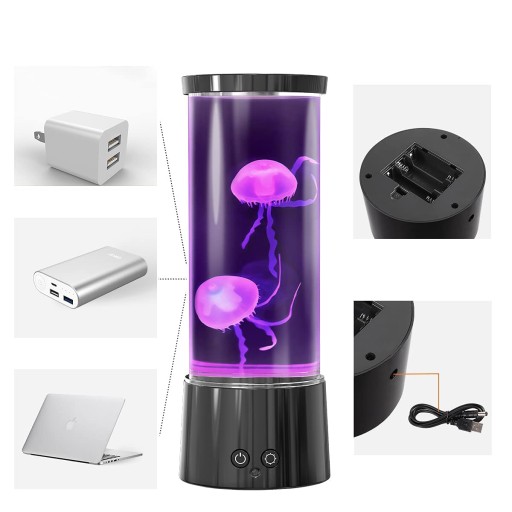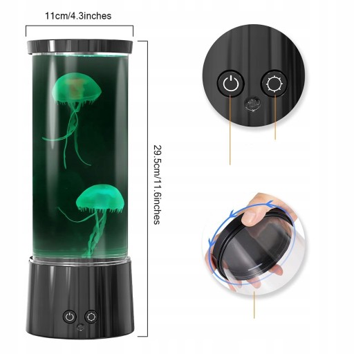 Реалістичні штучні медузи плавають на невеликому потоці води, створюваному двигуном у лампі, створюючи ідеальну заспокійливу атмосферу та реалістичний спокійний рух. Вони ідеально підходять для використання в будь-якому середовищі, де потрібно приділити кілька хвилин, щоб очистити голову та розслабитися.