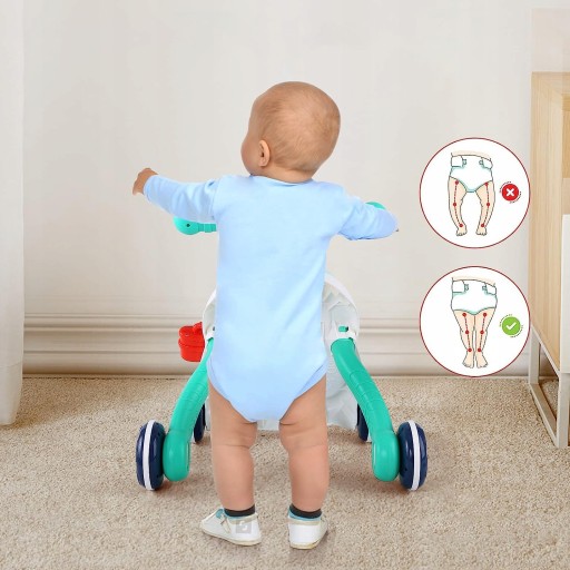 Вчіться ходити. Спостерігайте за тим, як ваш малюк робить перші кроки з музичними ходунками. Ідеально підходить для найменших, які тільки відкривають для себе можливості стояти і плавати. Коли вони освоїть підтягування та стоячи, навчіть їх триматися за ручку та повільно рухатися вперед.