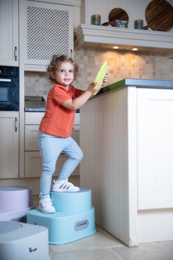 Дитяча платформа STEP UP - це безпечне і практичне рішення, яке характеризується високою якістю виготовлення та унікальним дизайном. Єдина 2-ступенева платформа для дітей з регульованою висотою від 15 см до 26 см, де ви можете легко використовувати одну або дві сходинки. Платформа надзвичайно корисна в кожному домі: на кухні біля стійки, у ванній кімнаті для туалету та умивальника, у дитячій кімнаті скрізь, де дитині потрібна безпечна висота для самостійного виконання завдань.